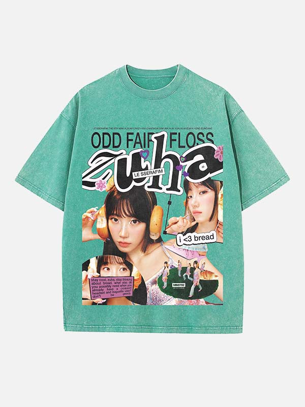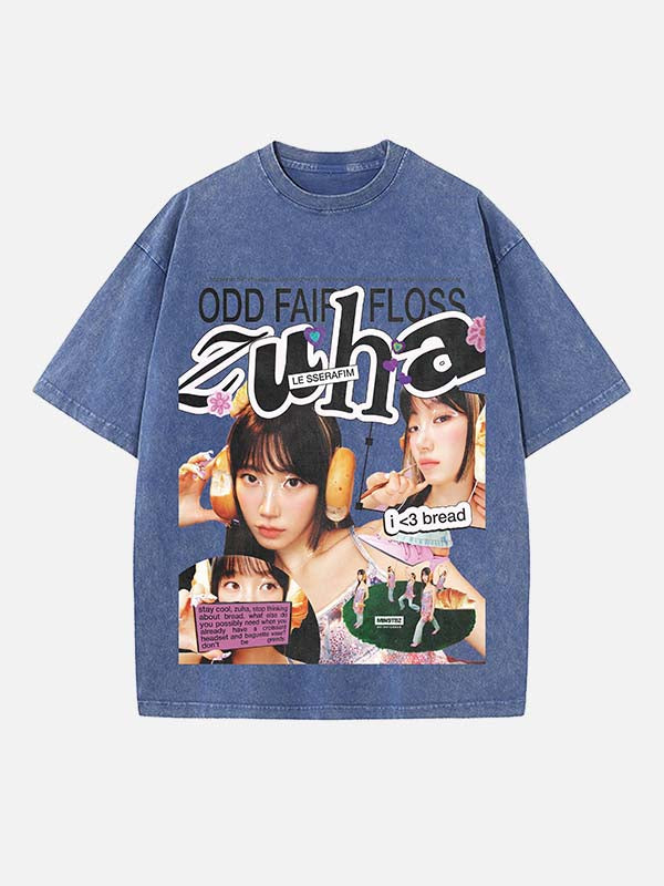 LE SSERAFIM Kazuha Print Round Neck T-shirt